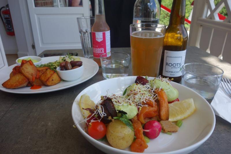 Sushi, gratinerad polenta, ratatouille med knaprig tempeh, körsbärspaj, rostad macka med fooled pork, plocktallrik med patatas bravas, celebration-bowl med färskpotatis, lättrökt papaya,chokladtårta med havresmul, cheesecake med fläderkräm och grön solroskaka med lemoncurd.
