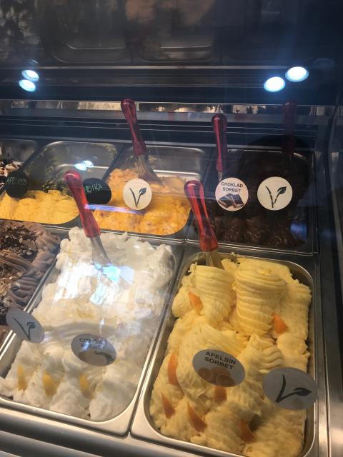 Glassbar som även har några maträtter, samt säljer choklad. Sorbeterna har veganmärkning (fyra smaker när vi var där), det finns en vegansk hamburgare på menyn och de har veganska chokladpraliner. Säljer även kaffe och har Oatly Ikaffe.